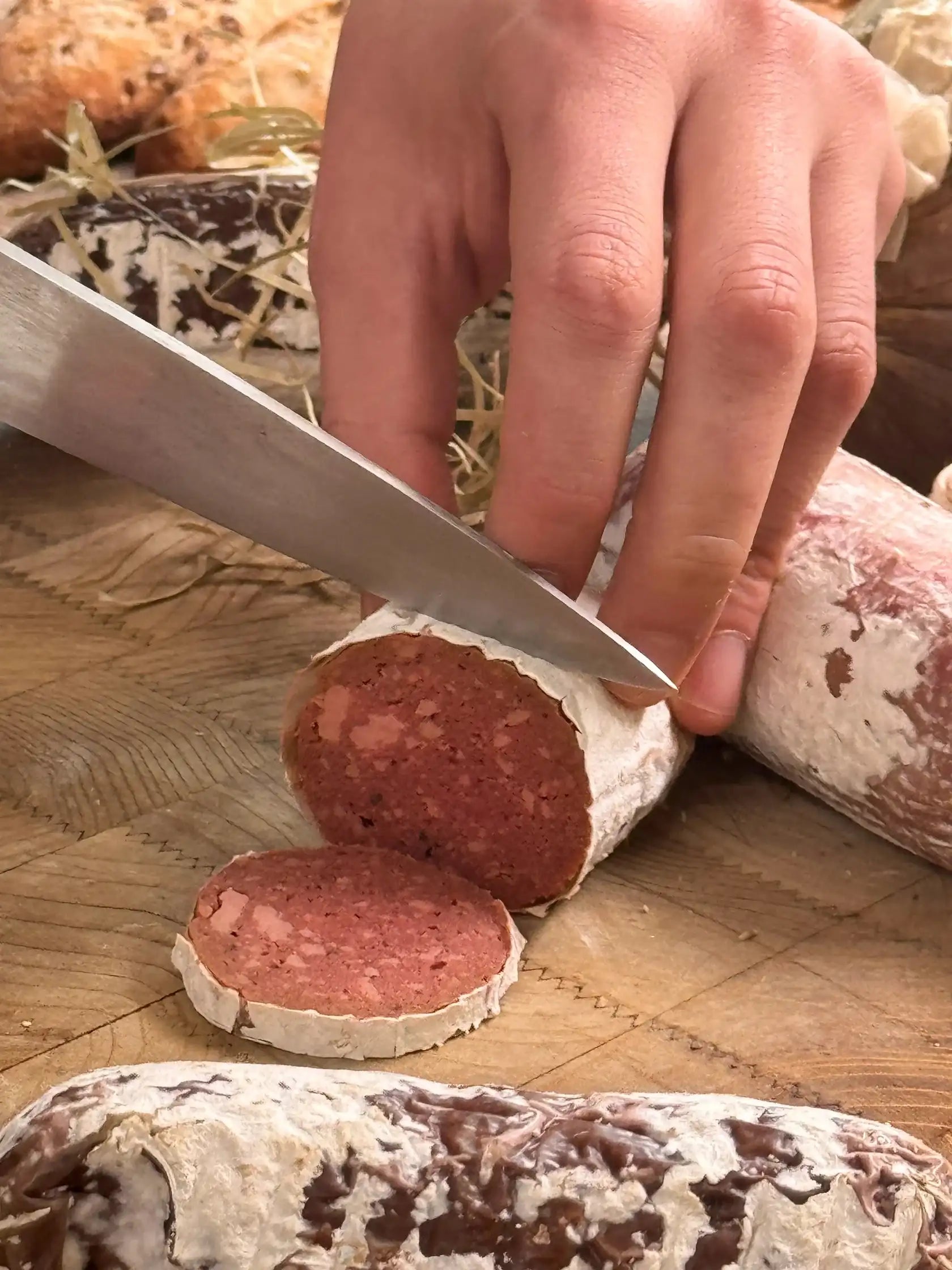 Durante la fase di stagionatura possono comparire tracce di muffa superficiale, del tutto naturali: è sufficiente rimuoverle delicatamente con un panno pulito o con la lama di un coltello.